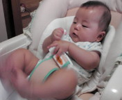 旬じゃない! 本日の離乳食は、大根です☆ いつものように、粥からあげると、 ↑こんな感じで、「くれくれ!」アピール♪ そして、初挑戦の大根は、 ↑こんな顔。 明らかに「イマイチ」という表情です。「勧められたら食べるけど、好きではないなぁ…。」と思っているのでしょうか? 私もちょっと味を確かめたら、(-。-;)「…あ〜。」と納得。辛くはないのですが、大根本来の味が薄いような感じでした。 旬じゃないからか、腕が悪いのか…。こんなのを続けて、野菜嫌いになったら、どうしよー。(--;) « 前の記事 次の記事 » コメント(0)