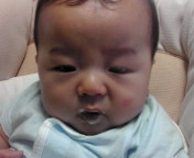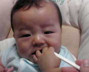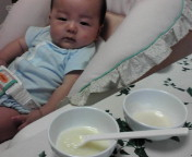 2回食始めてます 2日前から、離乳食を2回にしました。「2回か〜。めんどいな〜。」と、だらだらしていたら、離乳食初めて1カ月半たっていました★ 今朝は、ジャガイモ粥とフルーツヨーグルトでした。 フルーツヨーグルトの表情は… スゴく「すっぱー!(>.<。)」と。笑いが止まらない母なのです★ 食欲旺盛なチビは、「スプーンを貸せ!」と言わんばかりに、握って口にもっていきます。喉につかえそうで怖いので支えていますが、なかなか力強いです。親に似て、腹が減ったり眠かったりすると、機嫌が悪くなるんです。 偶然にも、挑発的ポーズ。 « 前の記事 次の記事 » コメント(0)