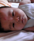 今日で8ヶ月です。 歯が6本生えています。 夕方、よくぐずります。 ズリバイが早くなりました。 名前を呼ぶと、反応します。 気にくわないことがあると、文句を言います。 離乳食をあまり食べません。 …etc 7ヶ月ではこれだけ成長しました☆ 8ヶ月では、何ができるようになるのかな〜? ↑授乳途中のために、この表情。まぶしいし、腹減ったし、眠いし、…。しかも、おでこには蚊にくわれた跡が…。 « 前の記事 次の記事 » コメント(2)