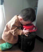 写真ではわかりづらいと思いますが、台所下の収納から、果実酒を引き出したチビです。