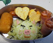 愛情弁当の日 昨日は月に一度の愛情弁当の日でした。 チビのために、チビの大好きなぐりぶーを作りました♪ …形がちょっと変でも、チビは「ぐりぶーだ!」と言ったので、大成功です☆ « 前の記事 次の記事 » コメント(0)